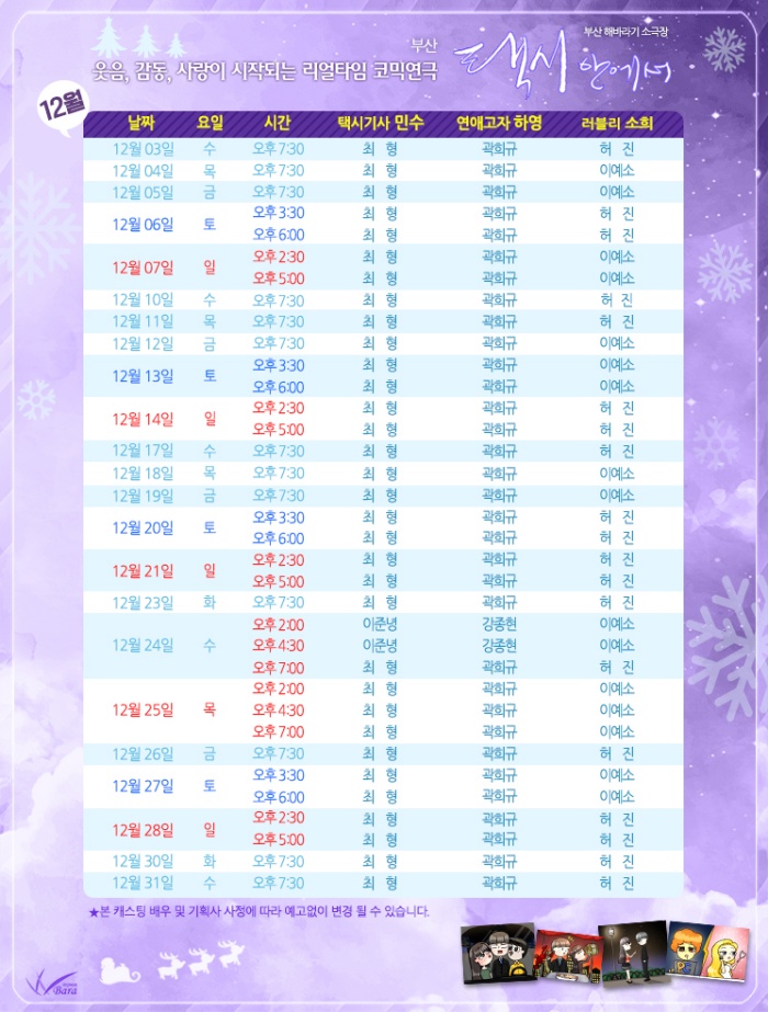 *12/24(수), 12/25(목) 오후 2시, 4시30분, 7시