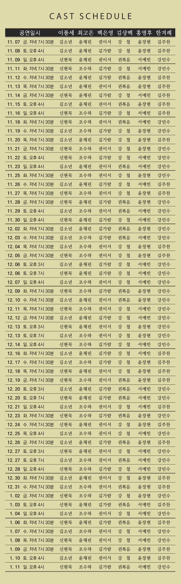 - [11/07(금)~11/30(일)]화~금 오후 7시30분 / 토, 일 4시