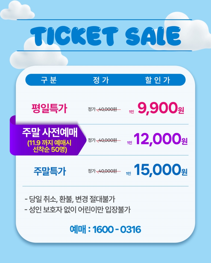 | 유효기간(이용조건) | 2025년11월14일(금) ~ 11월15일(토) (예매한 공연일시에 한해 이용 가능) | ||||||||