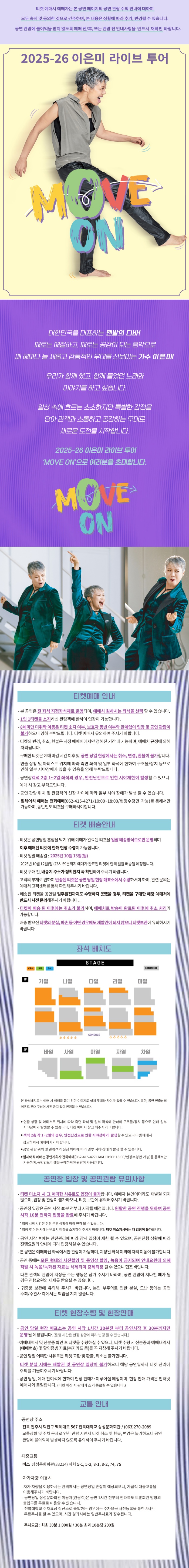 | 유효기간(이용조건) | 2025년10월31일(금) (예매한 공연일시에 한해 이용 가능) | ||||||||