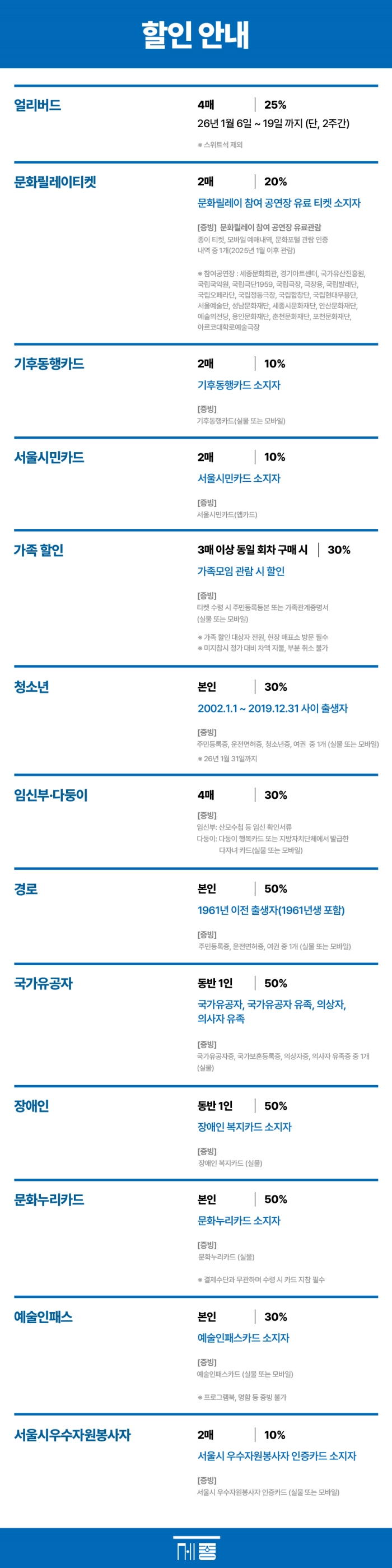 유효기간(이용조건) 2026년05월15일(목) ~ 05월17일(일) (예매한 공연일시에 한해 이용 가능)