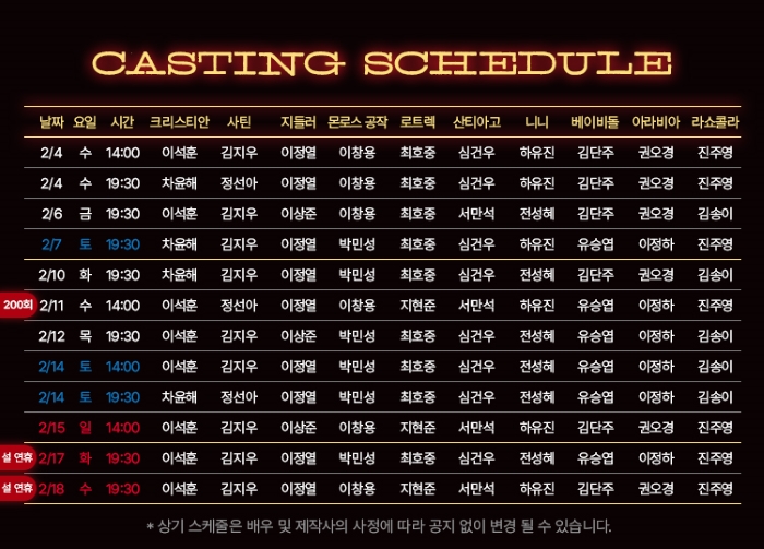 * 2/4(수), 2/11(수), 2/17(화) 2시, 7시 30분