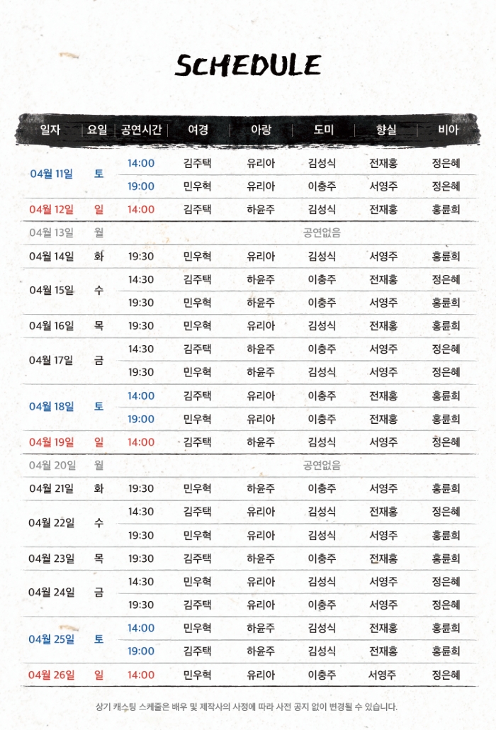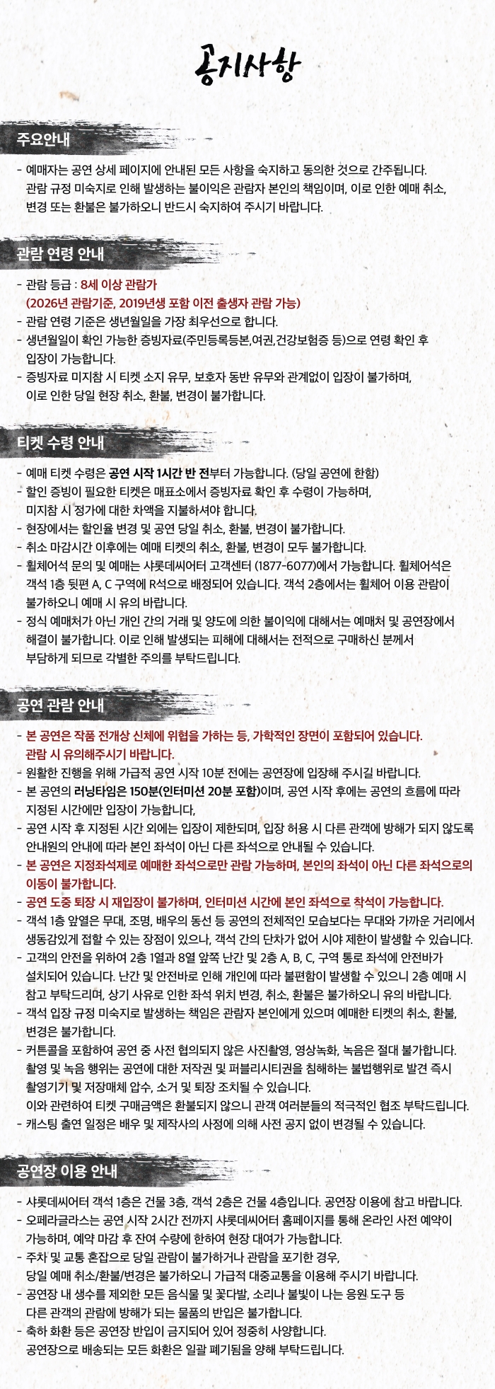 - 시간 : 공연시작 1시간 전부터