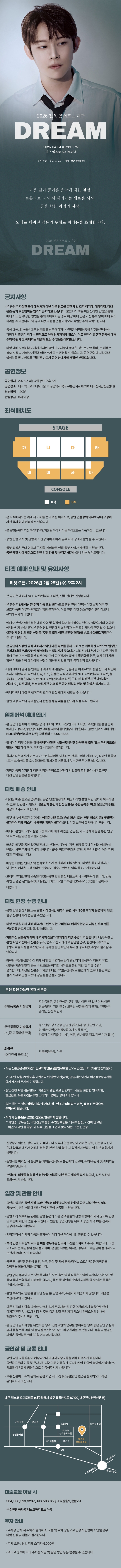 | 유효기간(이용조건) | 2026년04월04일(토) (예매한 공연일시에 한해 이용 가능) | ||||||||