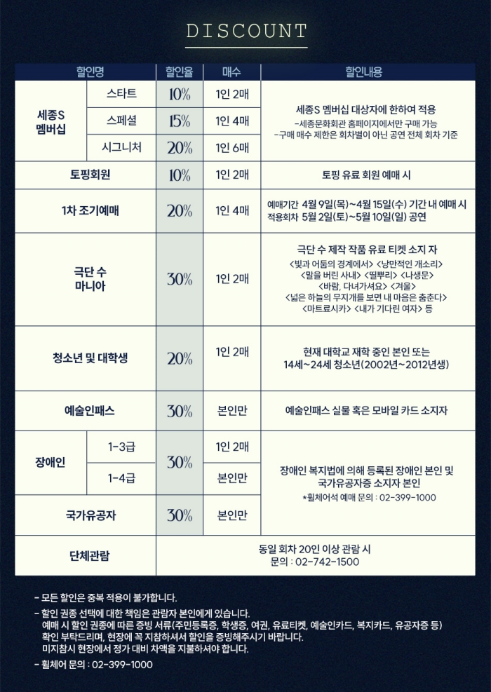 ∙ 취소마감시간 : 공연일 1일 전 오후 5시 / 공연일이 일요일, 월요일인 경우 토요일 낮 12시